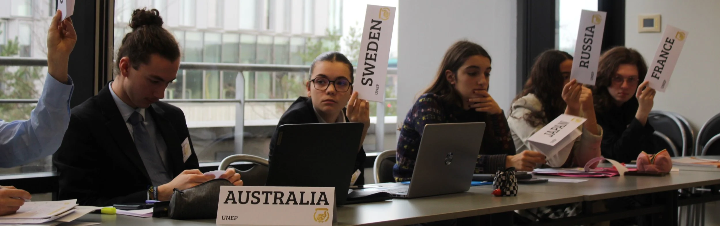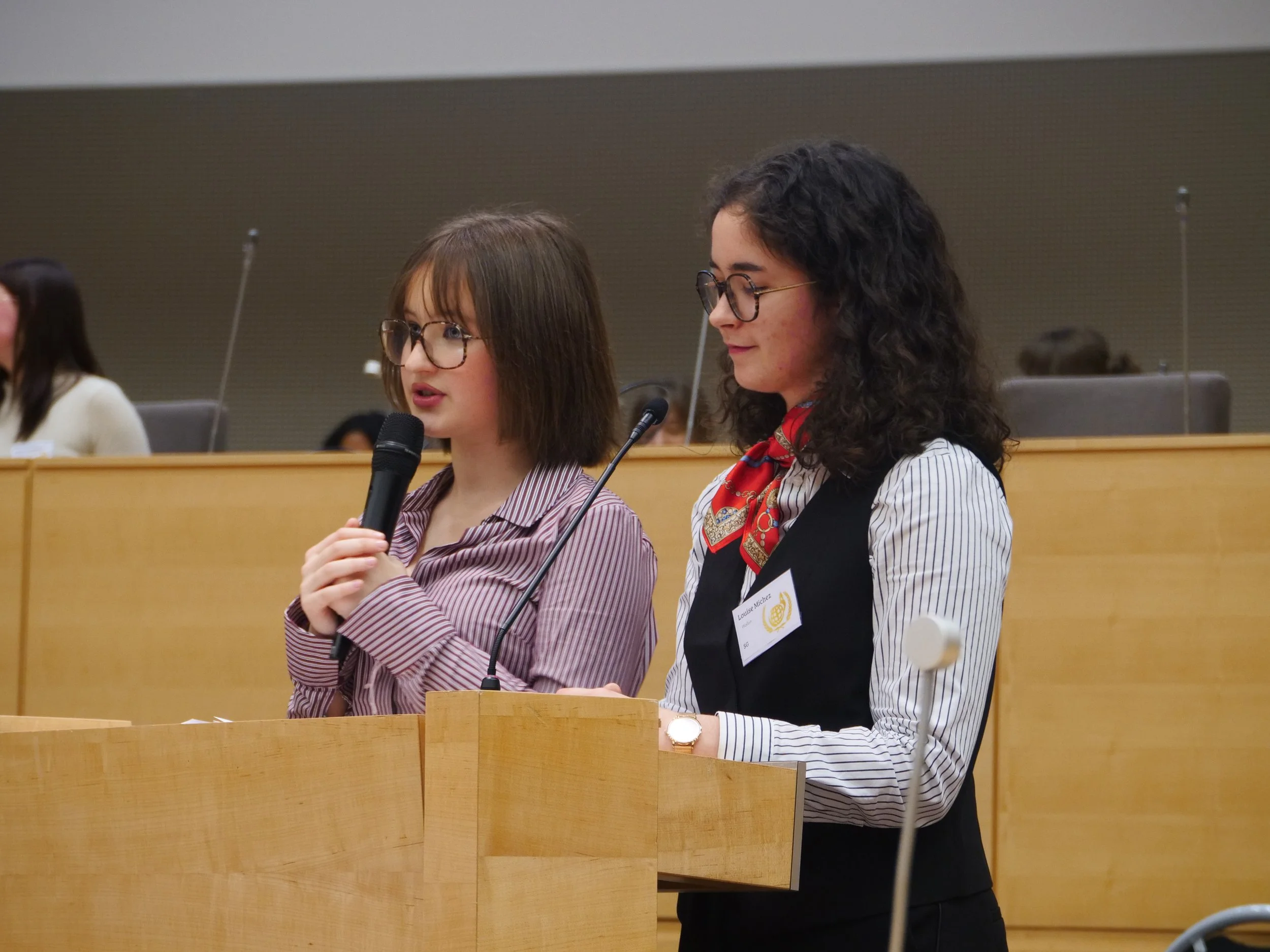In addition, 50 students from the 2 organising High Schools, Lycée Henri Wallon and Lycée international Montebello, are in the different teams taking care of the smooth running of the debates, such as the chairs, the admins, the socials, the finance team, the press team and of course the Secretary Generals, Camille Ryckebusch and Louise Michez.